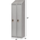 16-gauge frames, 24-gauge body and shelves | Double pan construction doors, 20-gauge outer and 24-gauge inner pans | Stainless steel recessed padlock handles | Magnetic latch ensures door is properly fastened when closed | Three zinc-plated coat hooks and one shelf included with single and double tier lockers | Durable powder-coated grey paint finish | Number plates available separately | | | | | | | | | | |