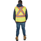 Lightweight and comfortable, fluorescent FR-treated polyester mesh fabric provides daytime visibility and flame resistance | 4″” yellow/silver reflective stripes offer maximum night-time visibility | 5-point tear-away feature on shoulders, sides and front for easy quick release | Safety D-ring access slot | Three hook & loop sealed pockets and one open pocket | Two radio loops | Compliant with CSA testing under CAN/CGSB standard 4.2 No. 27.10 for flame resistance of textile fabrics | | | | | | | | | | |