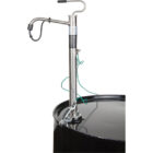 For fast transfer of most solvents, acids and corrosives chemicals | WARNING! Chemical compatibility of a drum or barrel pump should be checked for EACH LIQUID BY CHEMICAL NAME! Please contact your representative for chemical compatibility | Fits 15-55-gallon drums with a 2″” bung adaptor | Pump body made from 316 Stainless Steel with PTFE Piston & PTFE Sealing Gasket | Heavy-Duty bonding and grounding wires prevent hazardous static charge | Wires are secured by locknut and have heavy-duty alligator clips | Built-in internal flame arrestor prevents flame flashback | Wetted components: 316 Stainless Steel, PTFE | | | | | | | | | |
