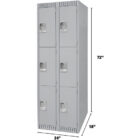 16-gauge frames, 24-gauge body and shelves | Double pan construction doors, 20-gauge outer and 24-gauge inner pans | Stainless steel recessed padlock handles | Magnetic latch ensures door is properly fastened when closed | Three zinc-plated coat hooks and one shelf included with single and double tier lockers | Durable powder-coated grey paint finish | Number plates available separately | | | | | | | | | | |