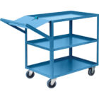 All-welded design, ready to use | Picking list holder eliminates the need to handle loose papers | 14-gauge steel shelves with 1 1/2″” lip, configured up | Two rigid and two swivel bolted-on 5″” non-marking rubber casters | Durable Kleton blue polyurethane finish | | | | | | | | | | | | |