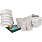 | Includes | 100 Premium Sorbent Pads (15"" x 17""); 10 Sorbent Socks (3"" x 120""); 8 Sorbent Pillows (8"" x 18""); 1 Drain Cover (36 "" x 36""); 1 Caution Tape (3"" x 300'); 2 Pairs Nitrile Gloves, XL (10); 2 Pairs Safety Goggles (One Size); 2 SMS Coveralls (X-Large); 10 Disposal Bags (26"" x 36"") |
