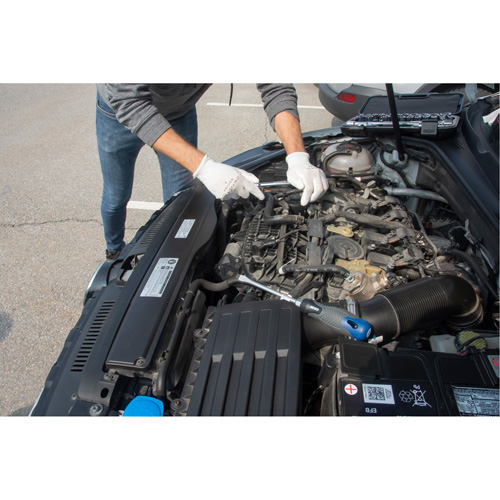 Chrome vanadium steel for extra strength and durability | Ratchet with contoured handle for comfort and added torque | Chrome-plated sockets to resist rust | 6-point sockets for a snug fit | Laser-marked socket size on each socket for easy identification | Ratchets feature a quick-release button for easy changing of attachments | Meets ANSI standards | | | | | | | | | | |
