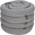 Made of a durable spunbond sock and net filled with 100% recycled cellulose particulate | Universal booms absorb petroleum-derived and water-based fluids | Durable rope runs between the sock and net allowing all tension to remain on the rope | Hooks and clips at ends and 18″” provide overlap at connection points | Quick snaps provide easy handling and permit to attach multiple lengths together | Used for large land spills | | | | | | | | | | | |