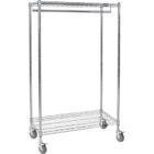 Garment rack on wheels helps to maximize space | Two 36″” shelves are perfect for storing hats and shoes | Hanging bar holds up to 50 jackets | NSF Certified | | | | | | | | | | | | | |
