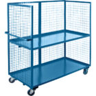 Rugged all-welded steel construction, ready to use | Designed for efficient loading/unloading and transportation of merchandise | 14-gauge steel shelves, 1 1/2″” lip up | Frame constructed from 1 1/2″” angle iron and 2″” x 2″” wire mesh | Includes: Two rigid and two swivel 5″” or 6″” bolted-on casters | Durable Kleton blue polyurethane finish | | | | | | | | | | | |